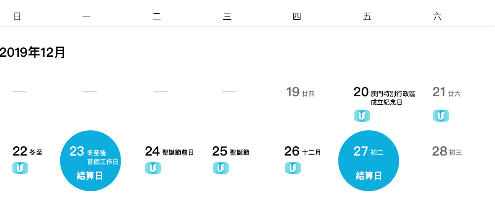 關於【澳門特別行政區成立紀念日及聖誕節假期】結算安排通知