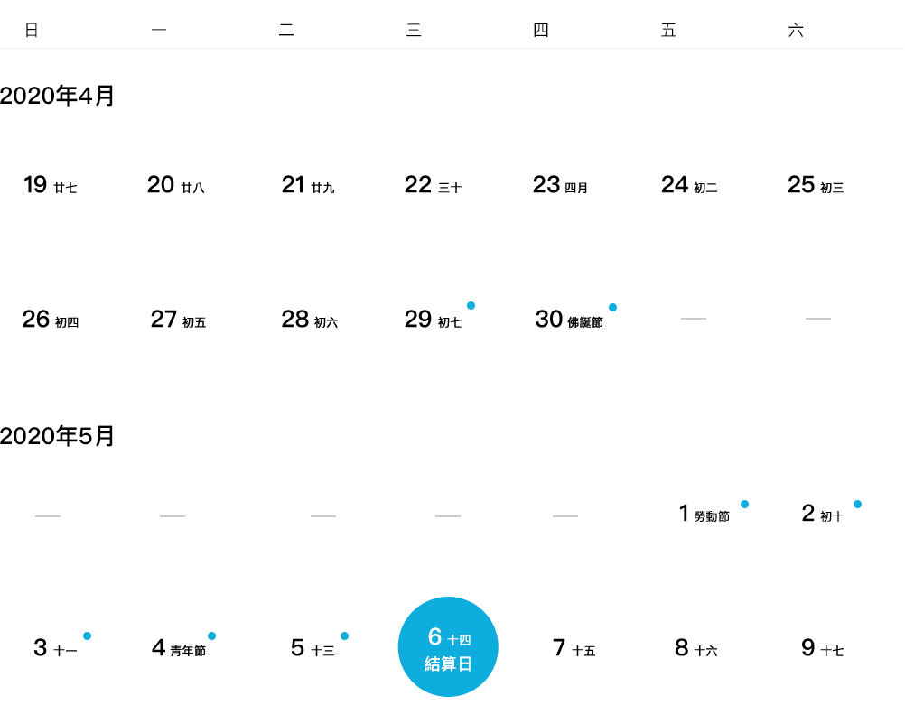 根據合作銀行及微信支付、支付寶的佛誕節及五一勞動節假期安排,放假期間的資金結算服務我司將作如下調整: