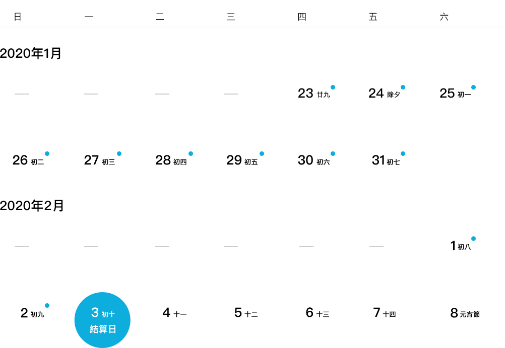 根據春節假期安排,我司將對放假期間的資金結算服務作出以下調整: