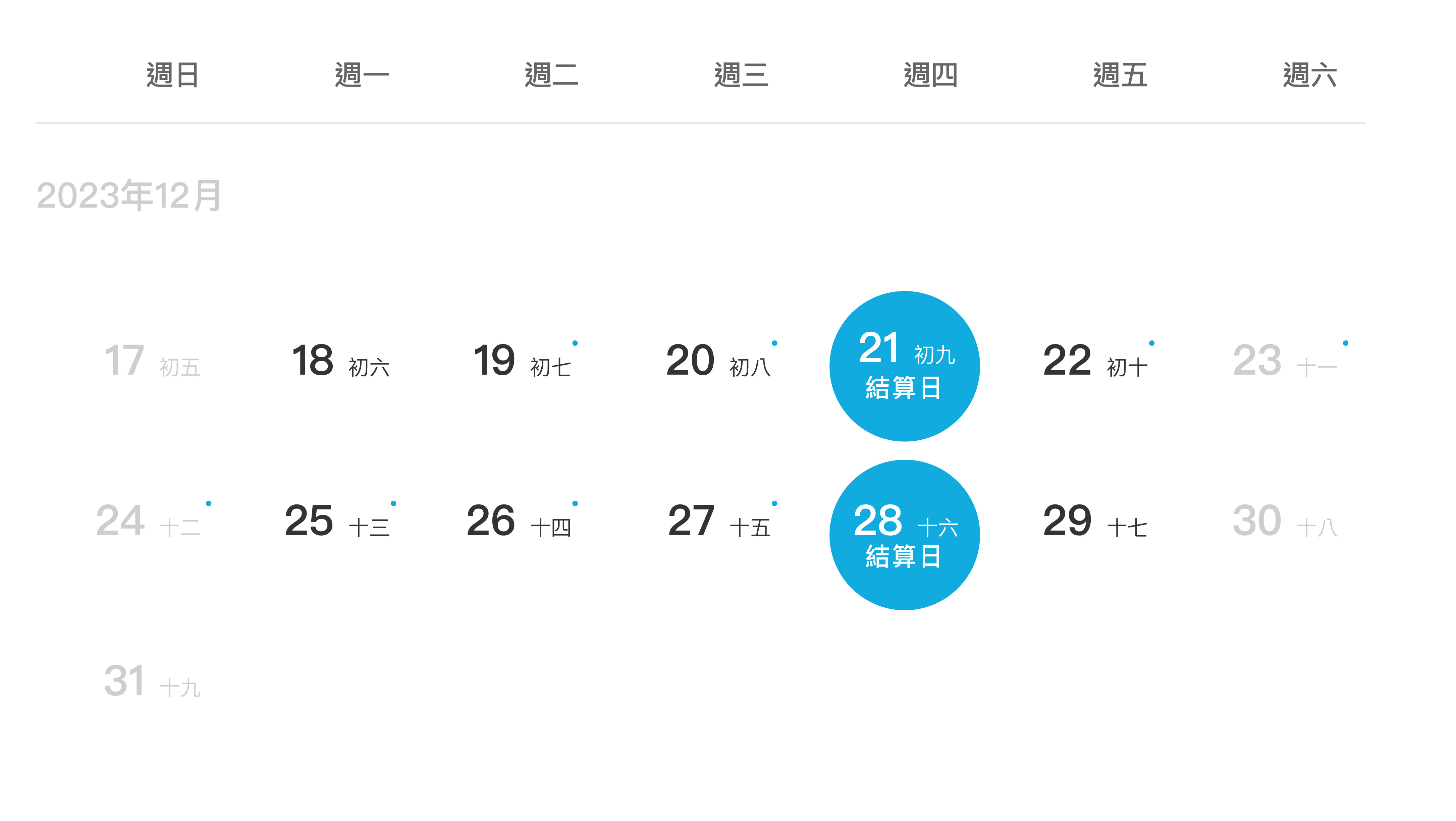 結算工作安排:2023年12月22日至2023年12月27日的交易,將統一在2023年12月28日進行結算。